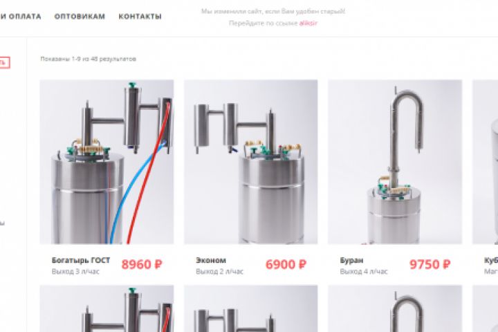 Сайт самогонных аппаратов, простой лаконичный дизайн с использованием анимации