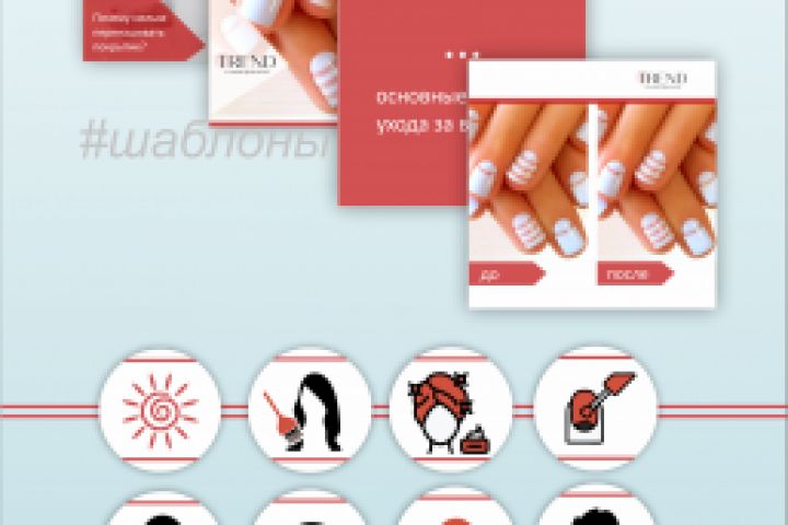 Сфера деятельности компании - салон красоты. В качестве акцента был взят красный цвет (в тон знаку логотипа), место для фотографий максимальное, т.к. заказчик планирует выкладывать с помощью этих шаблонов фотографии работ, салона и "вкусных" фотографий по тематикам статей.