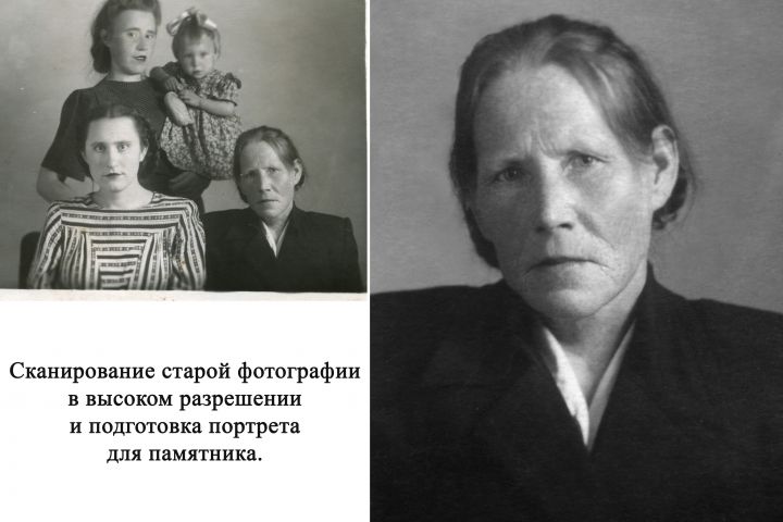 Сканирование старой фотографии на фото-сканере в высоком разрешении, профессиональная ретушь, цветокоррекция, кадрирование, увеличение резкости.