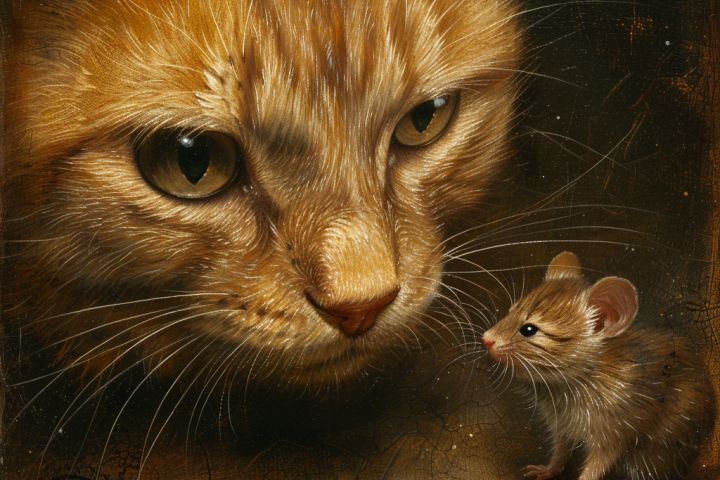 Фото кошки и мыши, сгенерировано в Midjiourney.