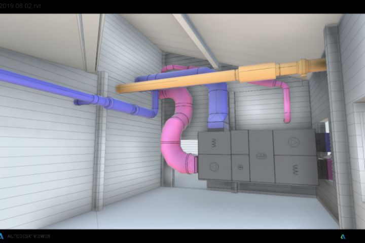 Вентиляция спортзала с кровлей сложной формы. Приточно-вытяжная установка находится на раме. Рама не нарисована.