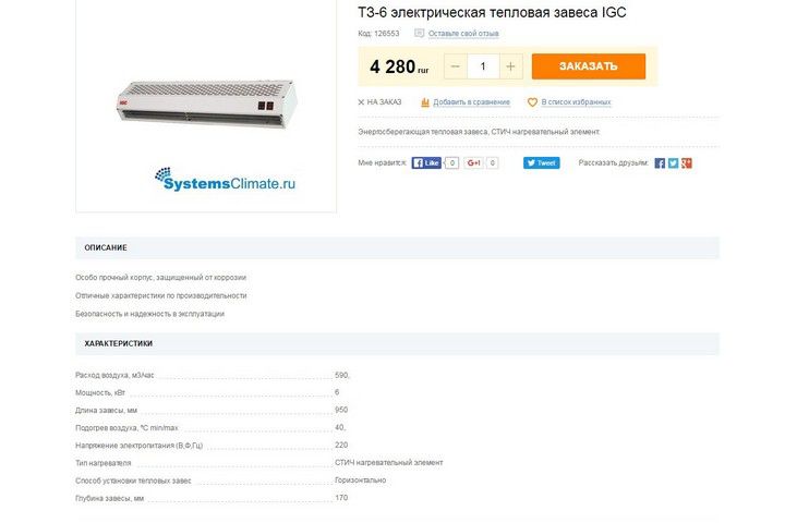 Заполнение климатического интернет-магазина: тепловые пушки, тепловые завесы, инфракрасные обогреватели.