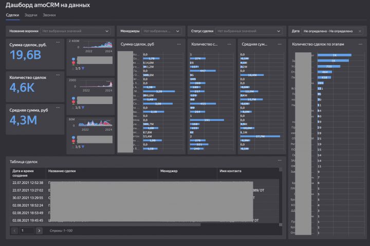 на основе данные CRM - создаются информационные панели и отчёты
