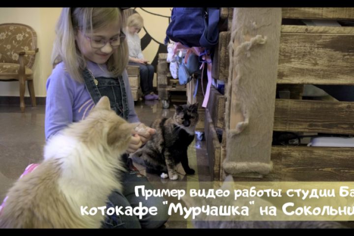 Пример видео работы. Художественно-информационный ролик о кошачьем приюте в формате котокафе "Мурчашка" на Сокольниках, Москва. Ролик был сделан по собственной инициативе, на волонтерских условиях. Для материала сочинена и записана авторская музыка. При монтаже ролика использовано несколько интересных решений для Adobe After Effects. Съемка производилась в ручном режиме с портативного стедикама. Для 5тиминутного финального материала было отснято больше 2х часов чистого времени, две полных съемочных смены.