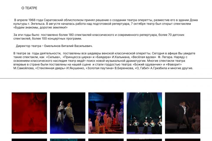Сделан логотип, собраны свежие фото спектаклей, представлена история и контакты театра.