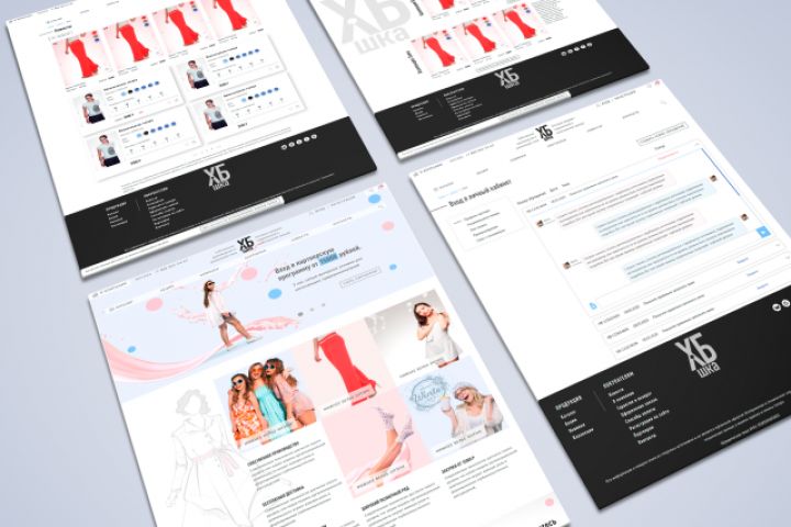 Каталог одежды, новостные страницы, личный кабинет, чат поддержки, и тд