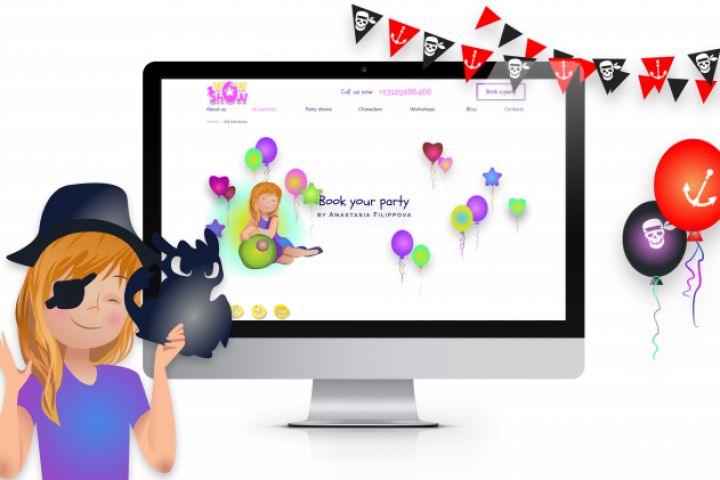 Уникальные услуги требуют уникального представления. Для аниматора из Чикаго мы создали персонажа бренда. Сайт наполнен яркими иллюстрациями, легкой анимацией для создания атмосферы праздника с первой же страницы. Его будет интересно рассматривать детям и удобно сделать заказ родителям.