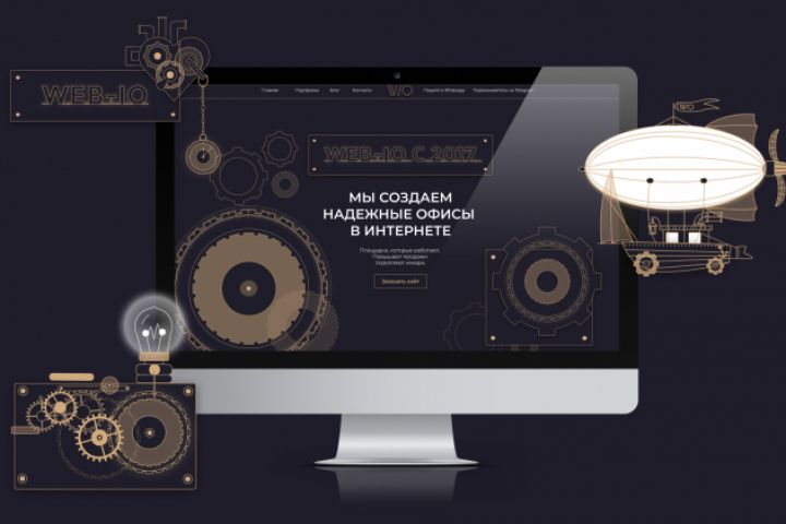 Для себя мы создали дизайн в стиле стимпанка. Минималистичный, но очень детализированный лэндинг с анимацией.