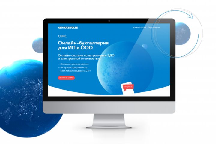 Дизайн для компании ООО "Раздолье". Лэндинг для программы СБИС - онлайн бухгалтерия для ИП и ООО.