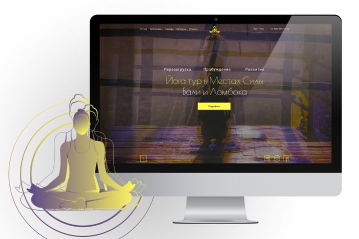 Продающий йога тур на места силы Бали и Ломбока лэндинг. Была разработана инфографика и анимация.