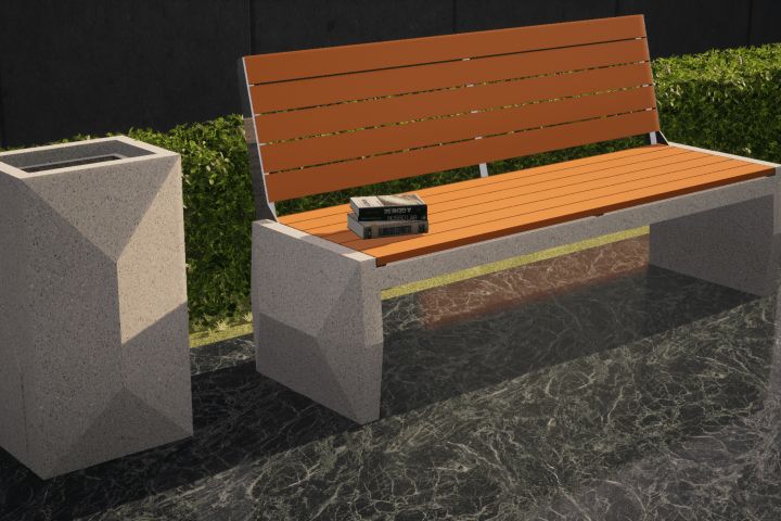 Спроектировал урну и лавку из бетона и была сделана визуализация.