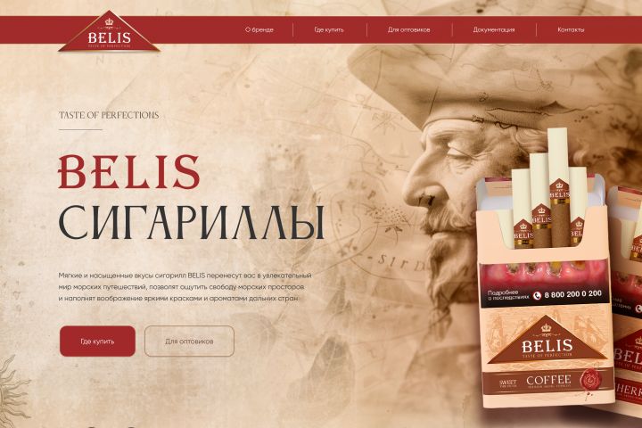 Креативный, нестандартный подход к веб-дизайну и подаче товара для оптовой продажи сигарилл.