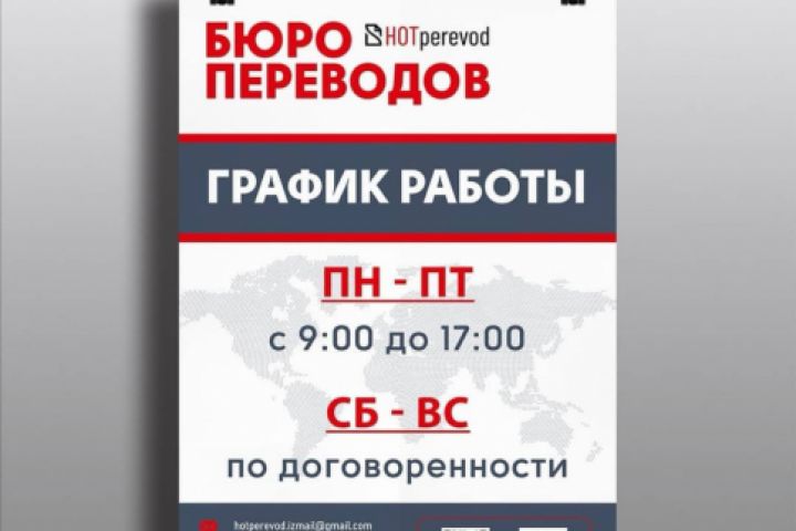 Задача: разработать стильную, серьёзную табличку с графиком работы. Обязательный символ - карта так как занимаются переводами с множества языков.