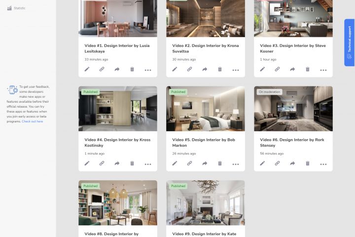 Пример верстки админки для вебхостинга по дизайну интерьеров