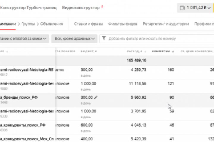 Настроил и вел рекламные кампании в Яндекс Директ для крупной телеком кампании в сфере b2b.