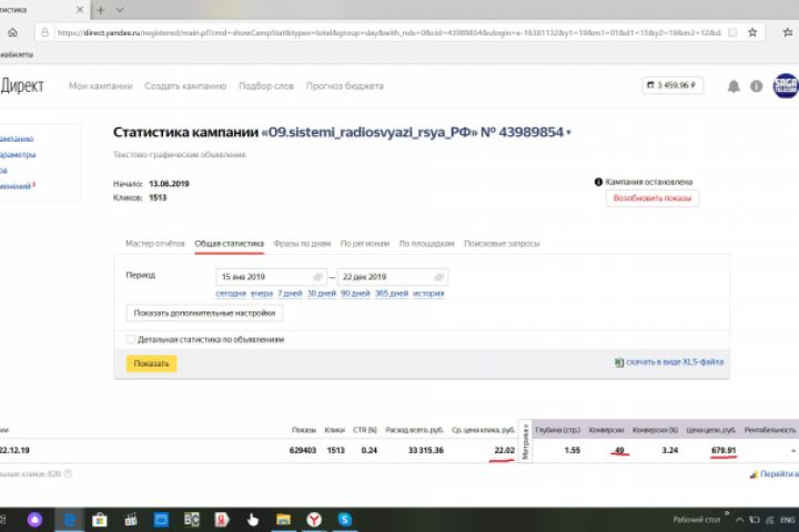 Настройка и ведение контекстной рекламы в поисковой сети Яндекс для крупного клиента в сфере B2B телеком. Когда приступил к работе средняя цена за клик была 37 руб., заявок было всего 5, звонков 6. В результате моей работы в течение 2 месяцев средняя цена за клик уменьшилась до 22 руб., заказчик получил за все время 25 заявок и 24 звонка.