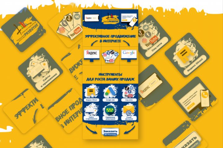 Разработать инсталендинг для компании интернет-продвижения "Развитие", придерживаясь фирменного стиля в логотипе