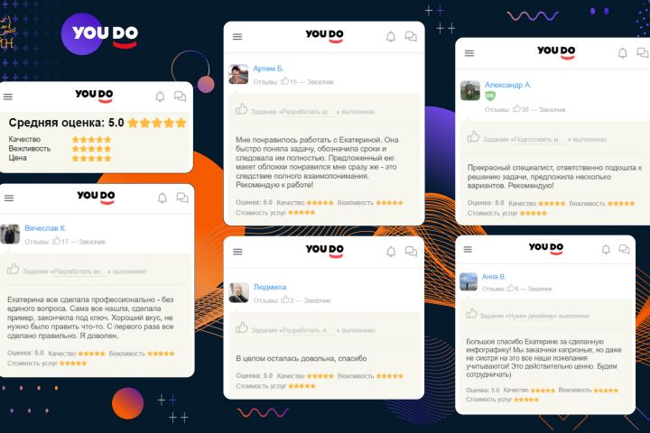 Отзывы в моем профиле на фриланс-бирже заказов Profi.ru по ссылке https://youdo.com/u11289832 (отзывы — в самом конце страницы)