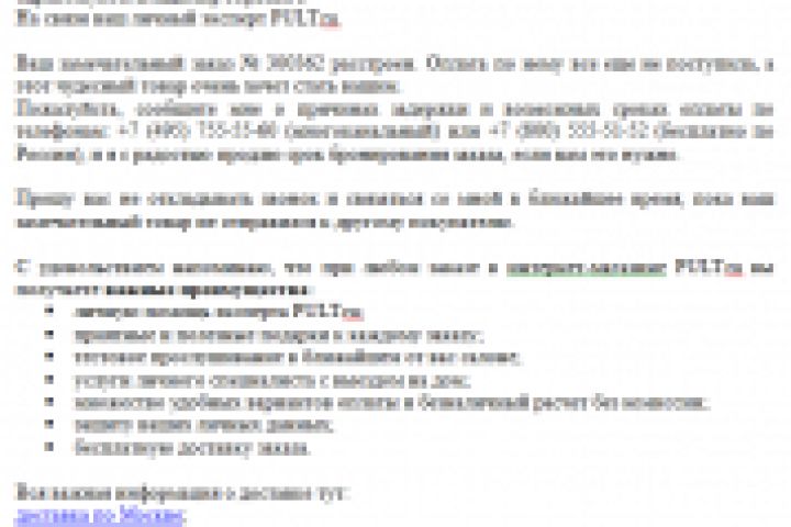 Письмо-статус: Ваш заказ расстроен - его не оплачивают