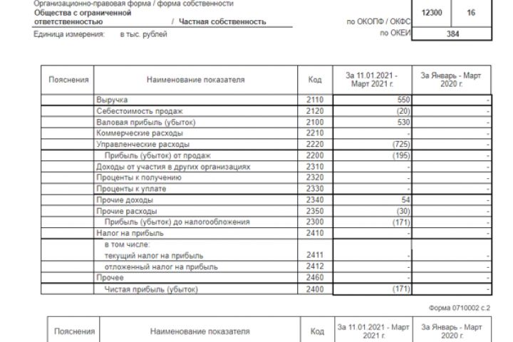 Отчёт о финансовых результатах