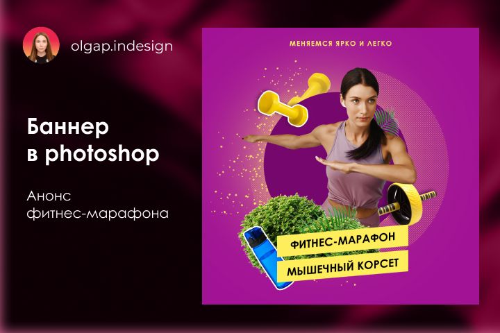 Баннер в photoshop "Фитнес-марафон"