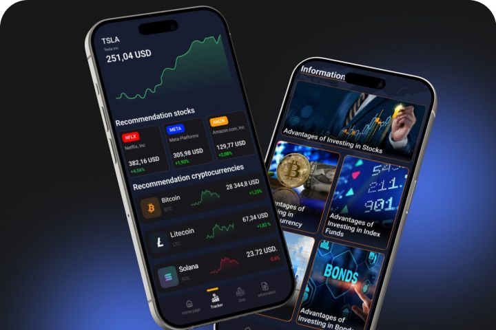 Задача: Разработка приложения с подключением к API криптовалютных и фондовых бирж, отображением графиков в реальном времени, квизом с результатами по баллам и блоком со статьями.