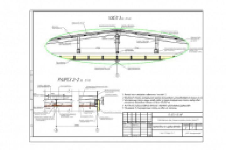 Гаражные боксы на 4 грузовых автомобиля. Разрез по крыше.