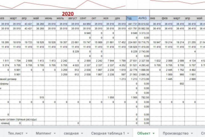Общий финансовый отчёт и лист с детализацией по объекту, где можно посмотреть динамику по прибыли и убыткам по выбранному срезу