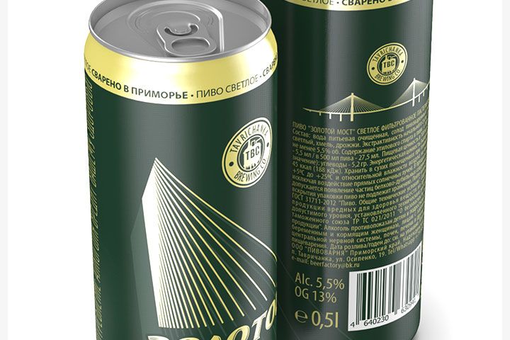 Дизайн пива прост, но выразителен. Основным элементом который придает узнаваемость бренда является иллюстрация напоминающий стропы того самого моста, каждый кто проезжал по этому мосту во Владивостоке помнит то грандиозное впечатление от вида этих огромных канатов. Пиво из качественных ингредиентов можно отнести к премиальному сегменту товаров и по этому было решено сделать акцент на минимализме. Контрастные темно-зеленый и золотой и без лишних деталей в оформлении, никаких стандартных плашек в форме эллипса и лишнего текста.