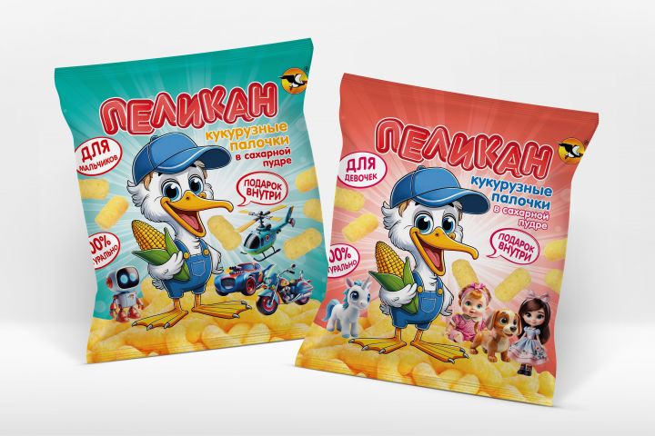 Дизайн упаковок кукурузных палочек и разработка персонажа для нее