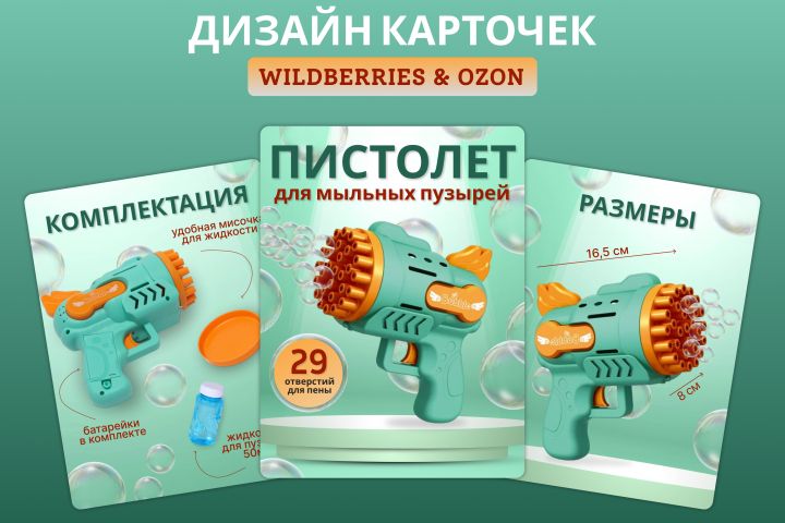 дизайн карточки товара, мыльные пузыри, детские товары
