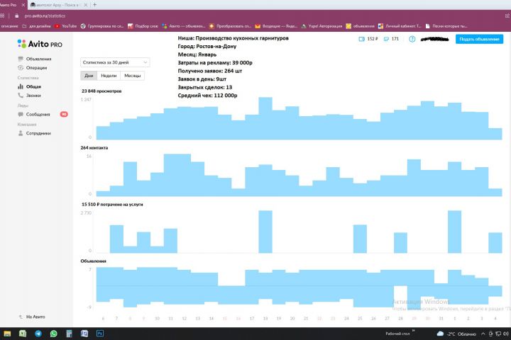 Получено заявок - 264 Заявок в день - 9 Закрытых сделок - 13