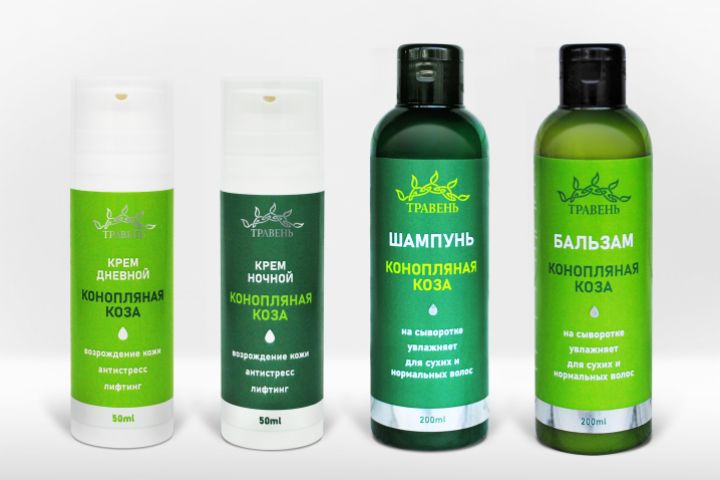 Дизайн серии натуральной косметики "Конопляная коза" бренда "Травень"