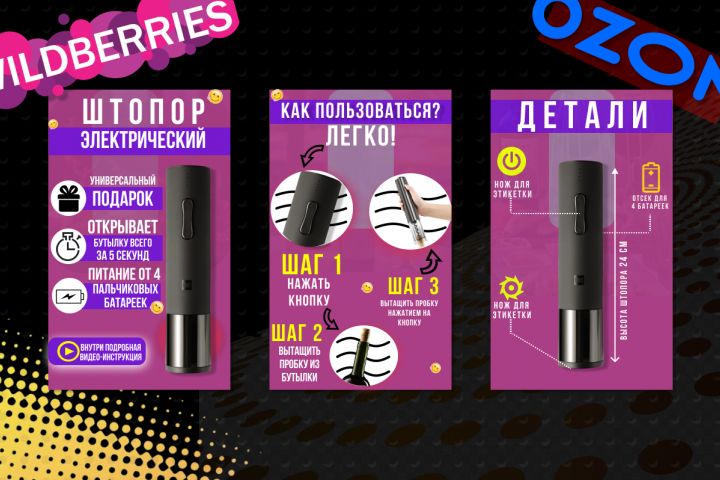 Представлена работа пример(Карточки для маркетплейса) если вам требуются карточки для какого либо товара, то она будет сделана под ваш стиль, под ваши хотелки в соответствии с ТЗ. Так же могу создать по собственной импровизации!