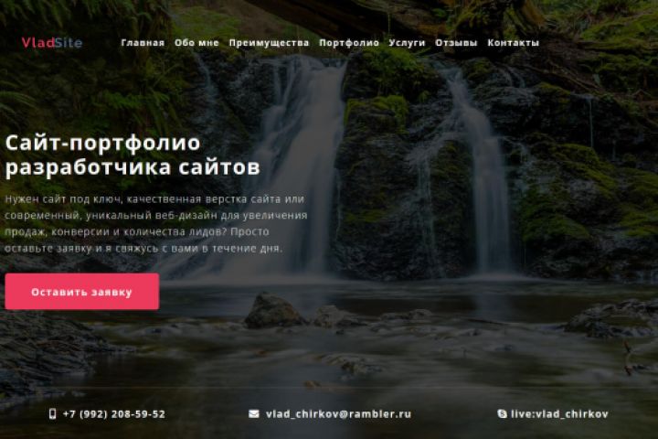 Я написал текста для своего сайта портфолио. Оформил их на визуальном прототипе на сайте wireframe.cc. Как только я закончил с прототипом, я приступил к дизайну. Сделал адаптивный дизайн под компьютеры, планшеты и телефоны. Затем я сверстал свой сайт адаптивно и кроссбраузерно. Для быстрой загрузки сайта я использовал технологию "Lazy Load"(отложенная загрузка изображений). После этого я посадил свой сайт на MODx, что позволяет мне редактировать свой сайт без необходимости лезть в код. В конце я установил Яндекс метрику и Гугл аналитику для отслеживания трафика на своем сайте.
