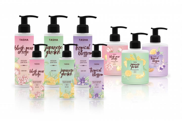 Дизайн лимитированной серии уходовой косметики бренда Tasha