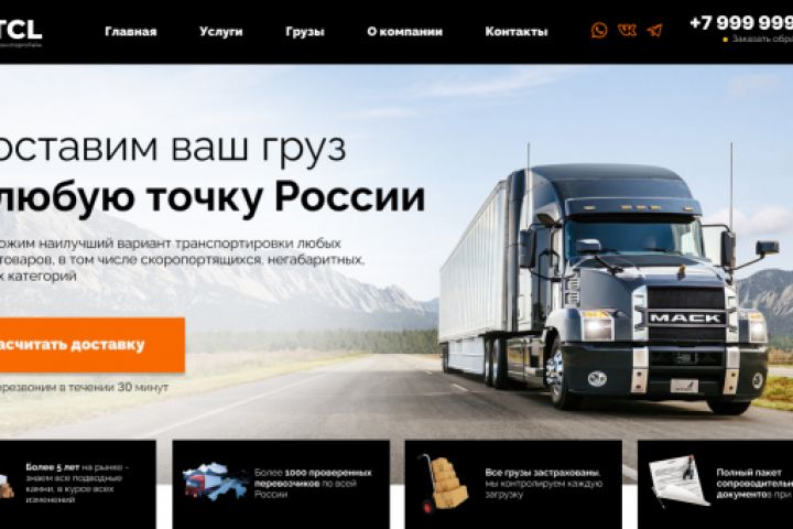 Разработка лендинга для транспортной компании TCL. Был заполнение брифинг, проанализированы целевая аудитория и конкуренты. Был разработан логотип.