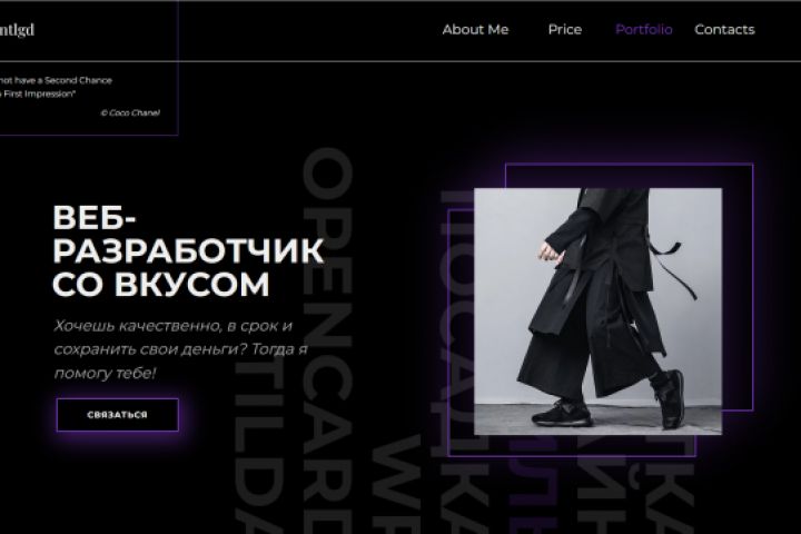 Cайт-визитка созданный на платформе Tilda. На этом лендинге применятся анимации, pop-up окна и т.д.