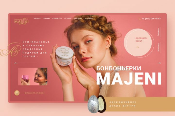 Основная задача: сделать красивый стильный дизайн под особый сегмент ЦА, выполнить нестандартную упаковку страницы.