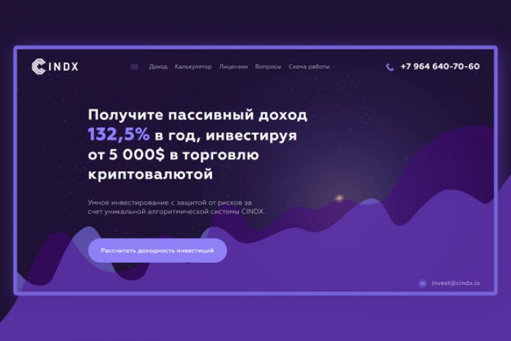 Основная задача: разработка Landing Page для криптовалютного проекта AS Cindx Investkapital, по привлечению инвесторов в проект.