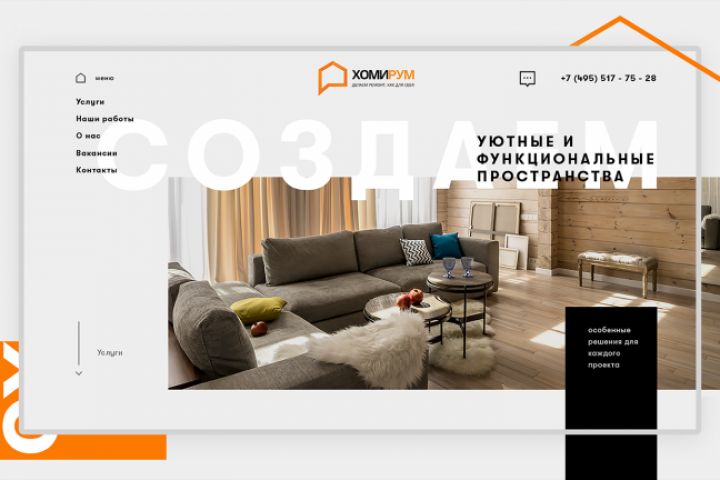 Основная задача: разработка многостраничного сайта для строительной компании Хомирум, которая оказывает услуги по премиум-ремонту полного цикла.