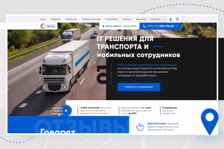 Основная задача: разработка многостраничного сайта для IT-решений в сфере транспорта и логистики. Проанализировали старый сайт, на основе данных сделали новую упаковку, оптимизировав объем контента без потери SEO позиций сайта, внедрили новые виджеты повышающие конверсию, прорисовали стильный конверсионный дизайн, сделали быструю загрузку страниц. Получился сайт высокого уровня, который каждый месяц бьет рекорды по трафику и количеству конверсий.