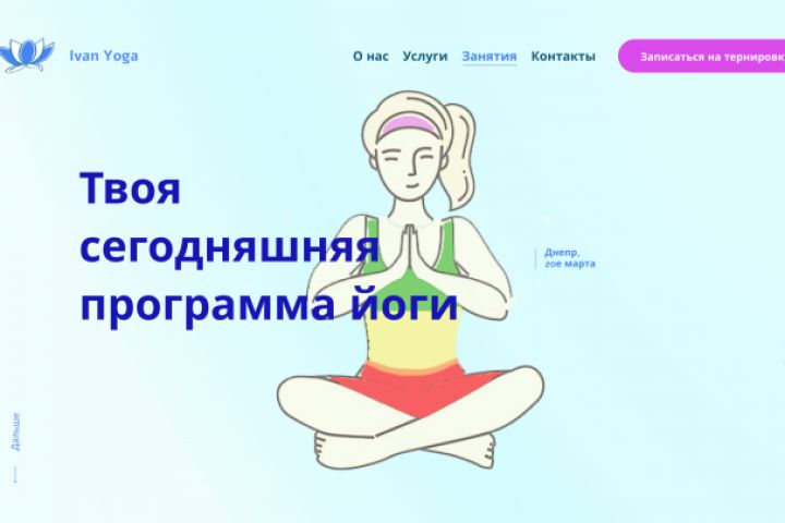 Дизайн выполнен для компании предоставляющим услуги по йоге, гимнастике, физ.упражнениям и занятиям спорту в режиме онлайн.