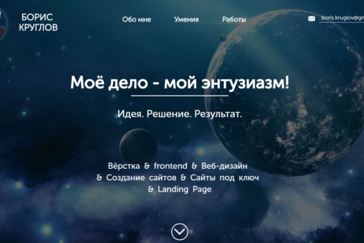 Landing Page создан полностью создан с нуля как портфолио (сайт-визитка) и описания вида рода деятельности.