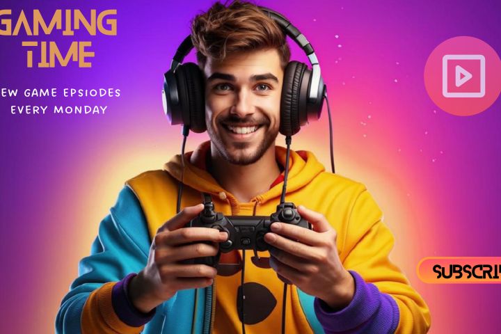 banner for youtube gamer young man, wearing headphones, with gamepad, with a playful and cheerful look, Character 3D Colorful, colors, UItra, 3D render, 16K, --q 5 --ar 7:4