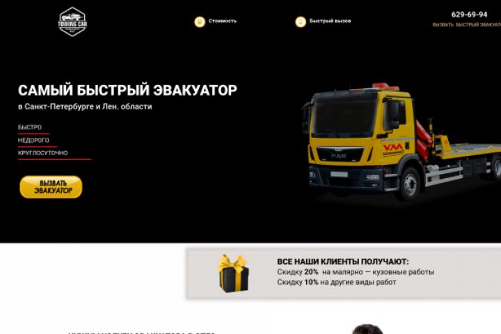 Лендинг для услуг эвакуатора в Санкт - Петербурге