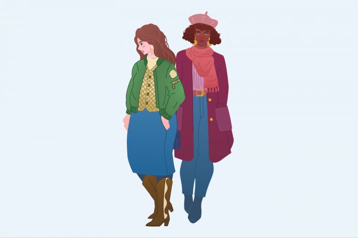 Модные образы в нарочито наивном стиле. Выполнено в качестве работы на микростоки. Копирование строго запрещено!
