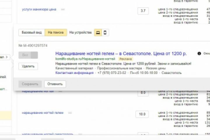 Поиск+РСЯ для студии ногтевого сервиса в Севастополе.