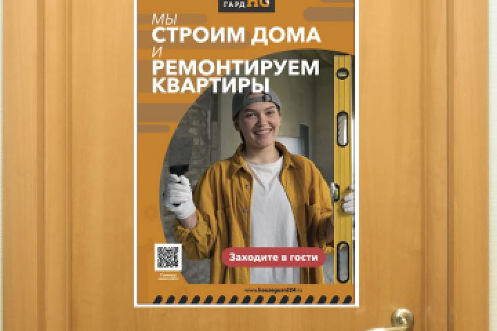 Рекламный баннер. По просьбе заказчика был выполнен в виде постера на входную дверь.