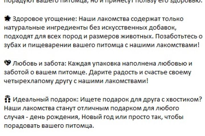 3. Профессионализм: Несмотря на небольшой опыт, я тщательно изучаю рынок и следую лучшим практикам копирайтинга, чтобы каждый текст был качественным и эффективным.